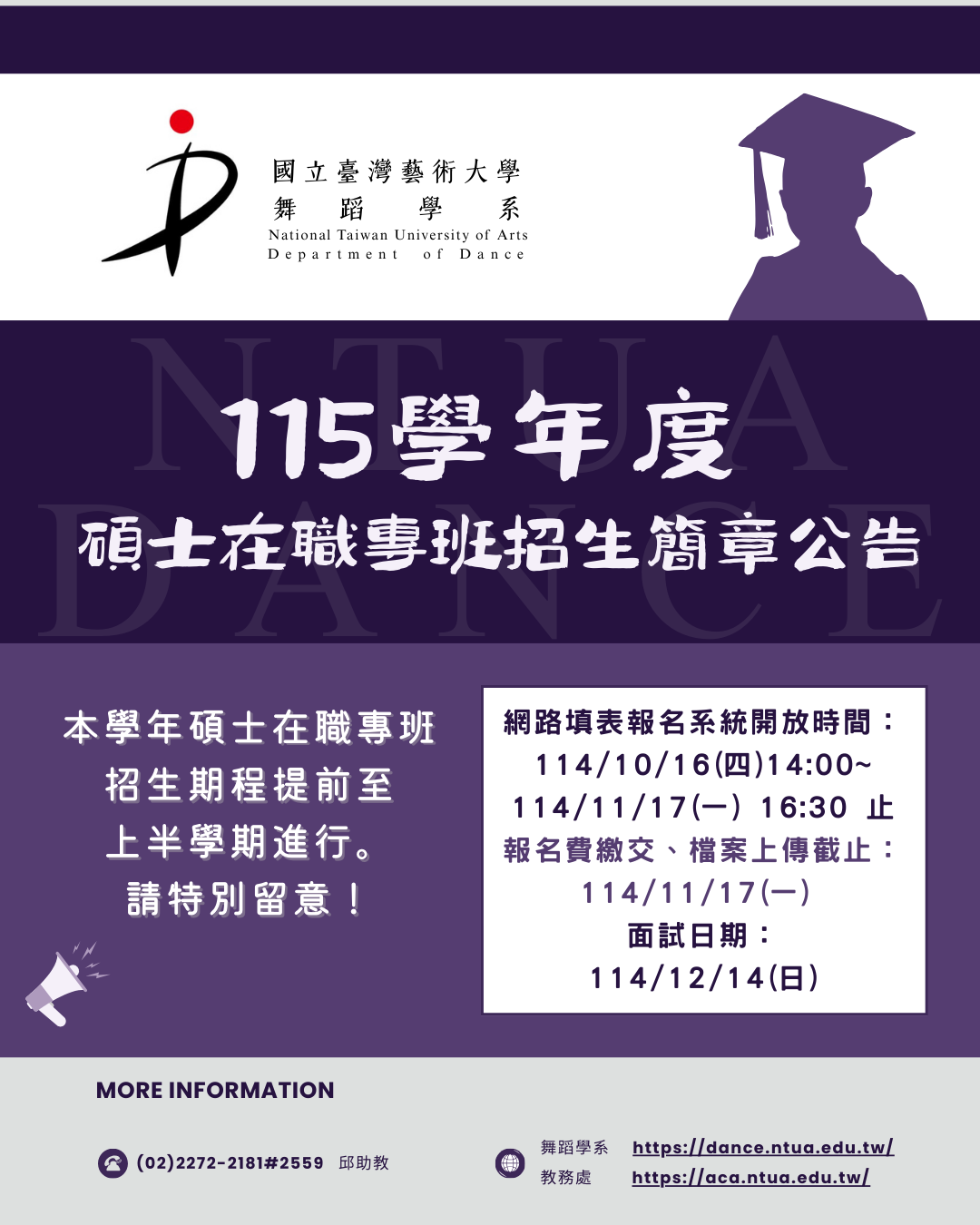 114學年度碩士班招生簡章公告
